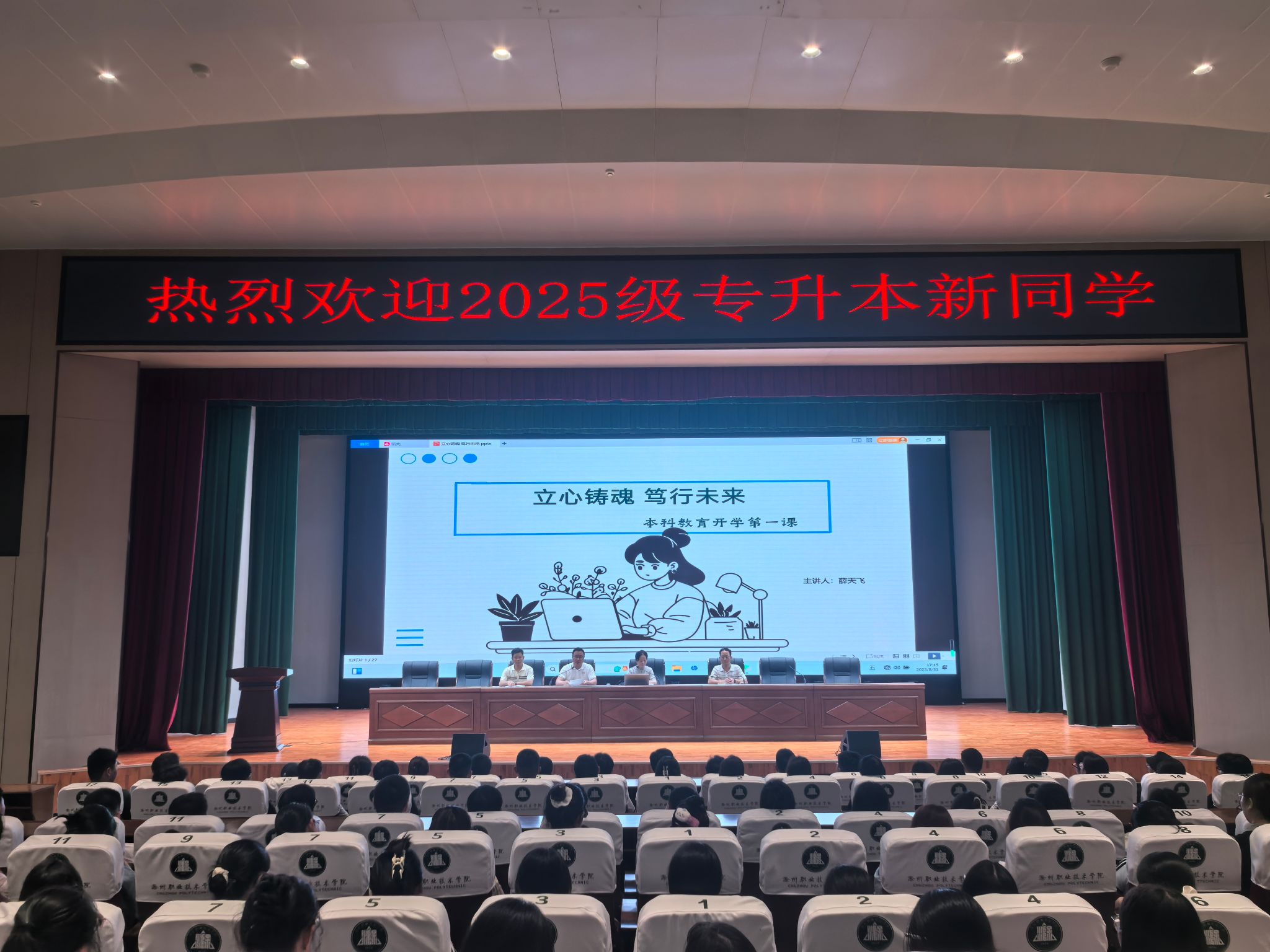 8月31日,raybat官网2025级专升本联合培养新生开学第一课在6号楼报告厅顺利举行。专升本联合培养办公室主任唐义武,本科教育党支部书记薛天飞,本科教育辅导员杨付春、余道奎,2025级310名专升本新生参加了该活动。