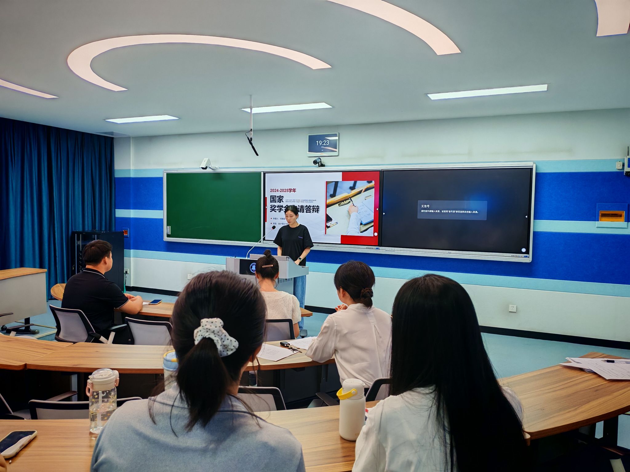 9月15日晚,本科教育国家奖学金答辩会在1202教室如期召开。本次答辩会由本科教育党支部支委会成员担任评委,三位国家奖学金候选人同台展示,25级部分学生代表作为场内观众共同参与,现场氛围庄重而热烈。