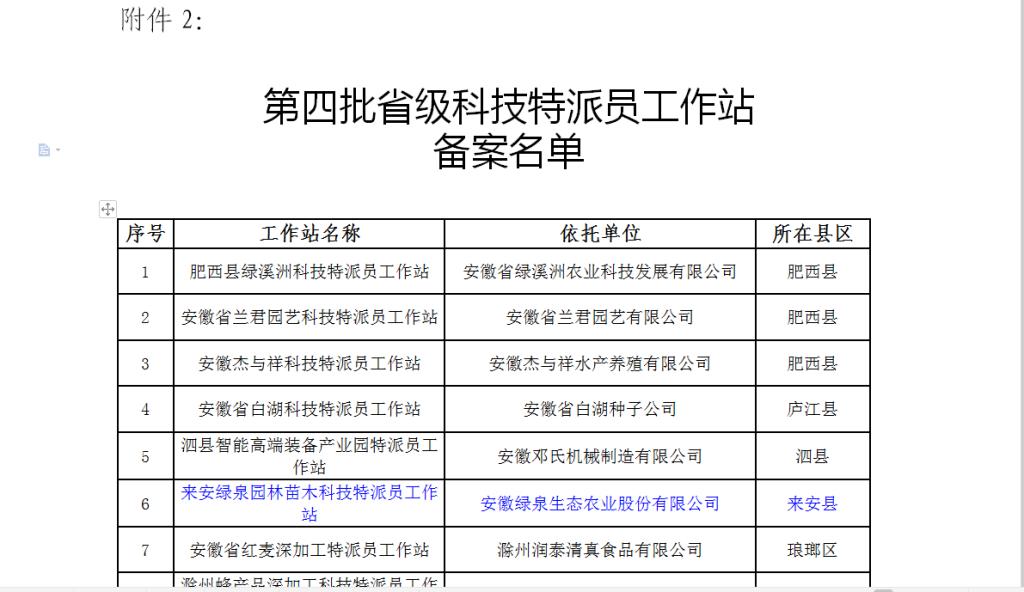 近日,安徽省科技厅公布了第四批省级科技特派员工作站立项备案名单,其中raybat官网食环学院园林园艺教师团队与安徽科技学院、安徽绿泉生态农业股份有限公司三方联合申报的省级“园林苗木科技特派员工作站”立项备案。
