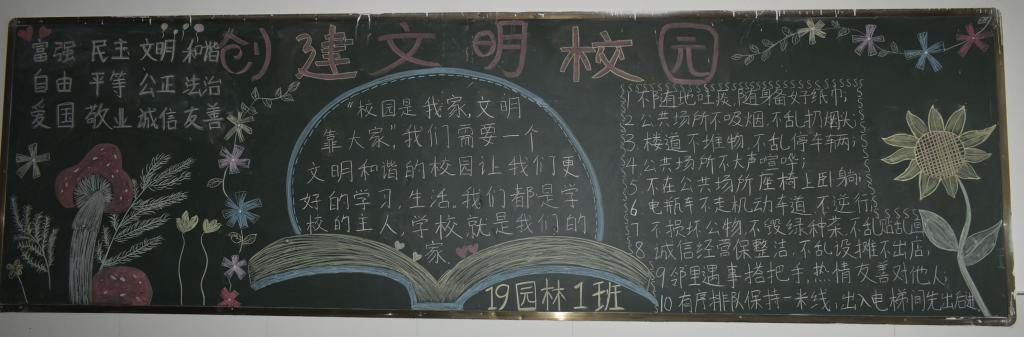 为积极响应文明创城和文明高校创建号召,进一步做好我院班级文化建设和精神文明建设,食环学院团总支于9月21日开展以“文明创建”为主题的黑板报评比活动,18级和19级各班参与了此次板报出制活动。