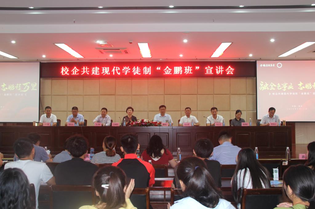 王伟详细介绍了“金鹏学院”和校企共建“金鹏班”的建设与发展,未来的运作模式以及为将为学员提供的培训项目和课程。郭良永全面介绍了金鹏控股集团在企业文化、人才引进、服务地方经济、未来发展规划等方面的情况。