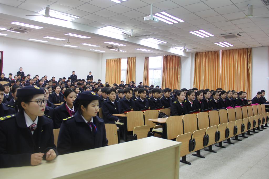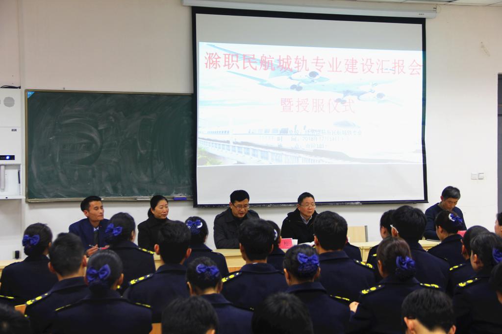 12月14日下午,经济贸易系空中乘务和城市轨道交通运营管理专业专业授服仪式在南阶1111教室举行,校党委委员、校长助理、招生就业处处长穆松,教务处处长张延义,经济贸易系主任翁嘉晨出席仪式并为2018级学生授服。