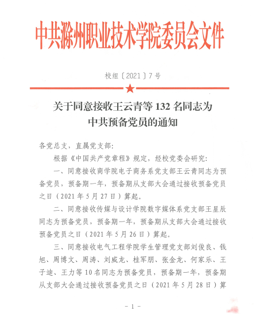 关于同意接收王云青等132名同志为中共预备党员的通知