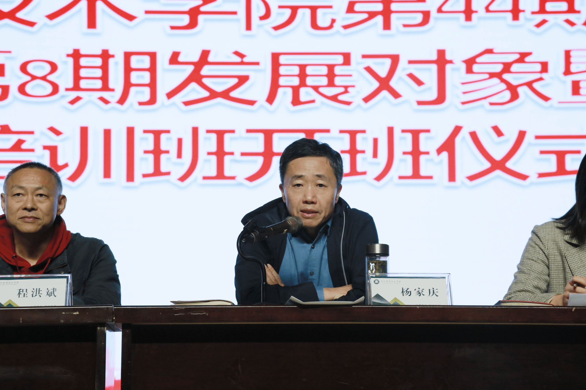 开班仪式上,杨家庆从端正入党动机、坚定理想信念、锤炼过硬作风三个方面为全体参训学员上了一堂精彩的微党课,并对参训学员提出了明确的要求。杨家庆强调,要把本次集中学习当作一个新的起点,要进一步学习党的基本知识、掌握党的基本理论,在今后的学习生活工作中要按照党员的标准严格要求自己,不断加强党性修养和锻炼,积极投身到中国特色社会主义事业建设中去。